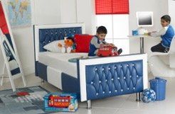 COLOUR BLUE AND WHITE INCLUDES A DELUX MATTRESS